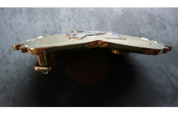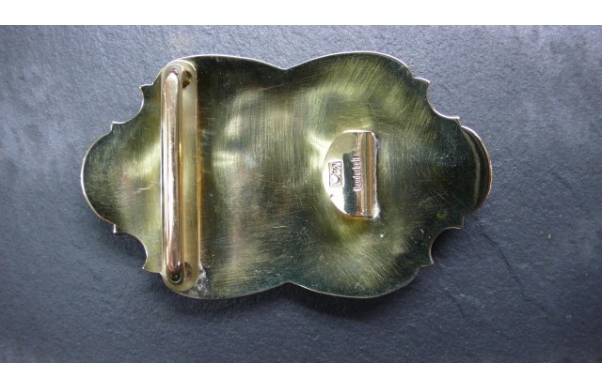 Trachtige Monogrammschließe in bicolor, der Korpus wurde eisgekratzt besteht aus Messing sowie der Schließenrand,die Monogramme in Sterlingsilber! Der Gürtel aus