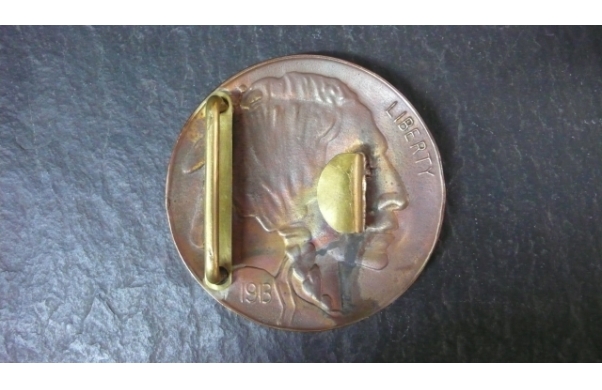 Westernschnalle Bison, rund mit einem Durchmesser von 75mm Die Schließe ist aus Bronze Der Gürtel aus