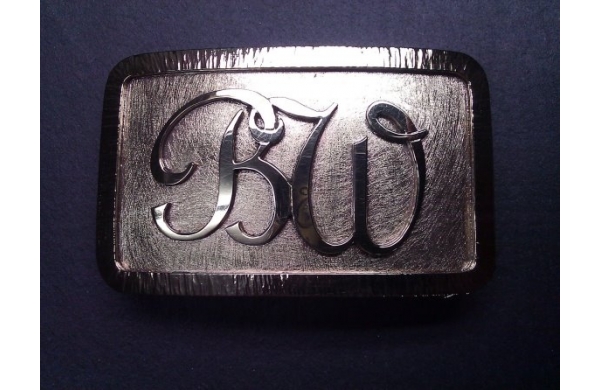 Die Schließe besteht ganz aus Messing, der Schließenrand wurde gehämmert der Korpus wurde eisgekratzt, das Monogramm wude hochglanz poliert. Der Gürtel aus